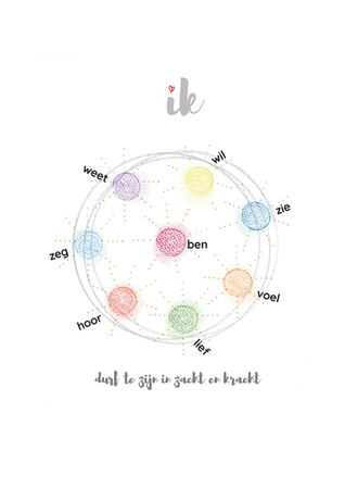 Marjolein heeft me durven uitdagen om mijn eigen geschreven woorden, mijn eigen getekende cirkels te gebruiken. Super blij mee dat Marjolein out of the box heeft durven denken, zij heeft mijn woorden omgezet in een allesomvattende geheel. Trots op!"